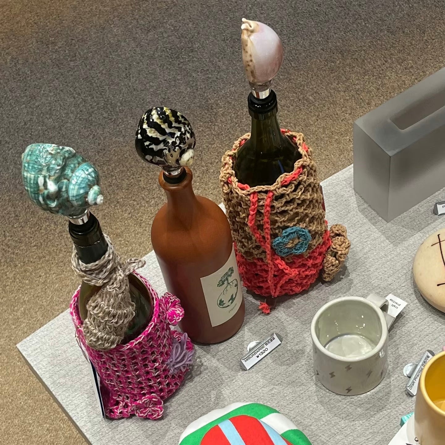 Real shells, stainless steel base. Each one’s slightly different.